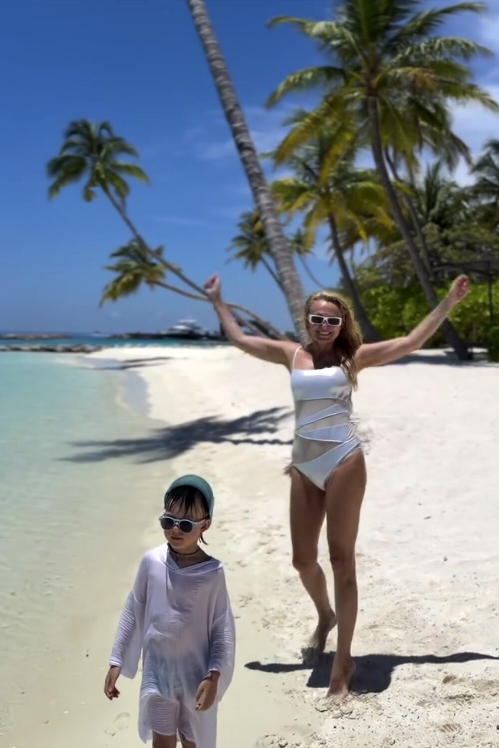 Продюсер Яна Рудковская в купальнике прогулялась по пляжу на Мальдивах. Снимками она поделилась в Instagram (владелец компания Meta признана в России экстремистской и запрещена).