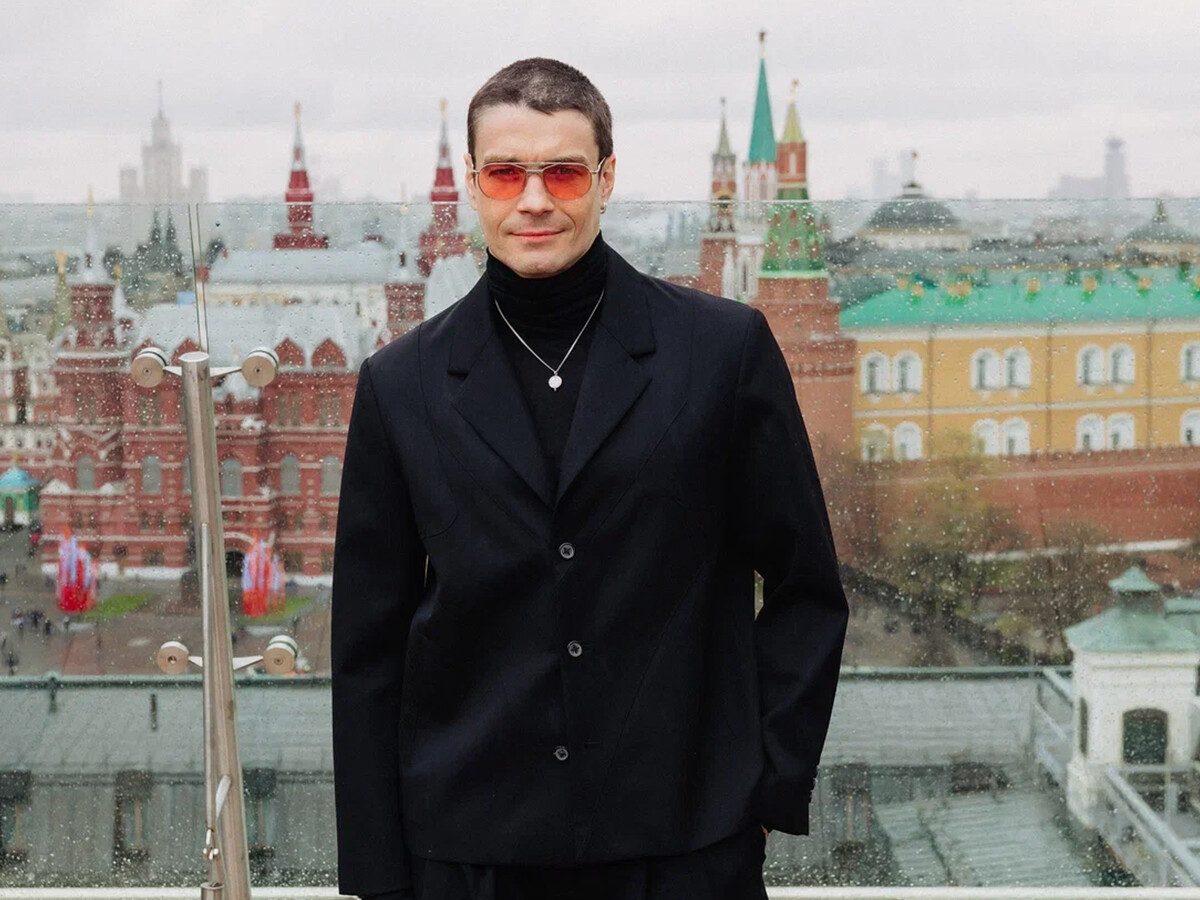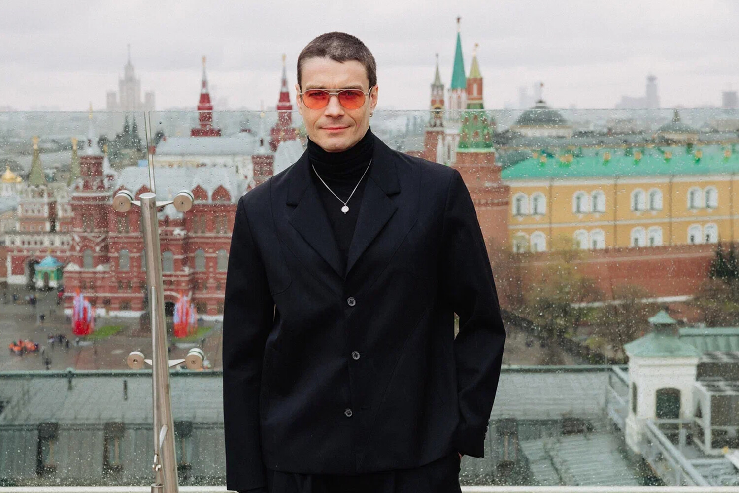 Максим Матвеев в костюме и водолазке снялся на террасе с видом на Кремль