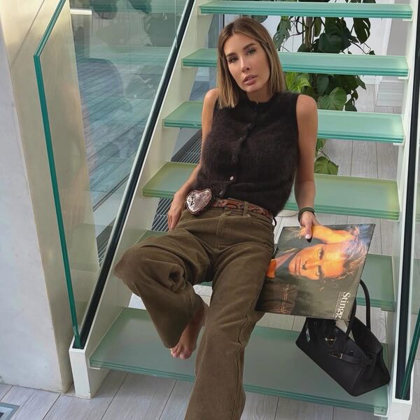 Кети Топурия позировала в прямых коричневых джинсах и жилете с голыми руками. Образ дополняла сумка Hermes. Волосы певица выпрямила и сделала легкий макияж. Съемка прошла на лестнице в загородном доме, а в кадре Топурия также показала виниловые пластинки из личной коллекции.