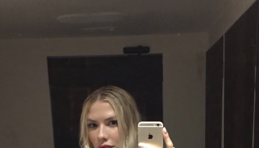 Модель Елена Перминова показала фигуру в платье с вырезом на груди без лифчика