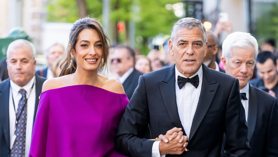 Жена актера Джорджа Клуни Амаль вышла на публику в мини-платье с мужем