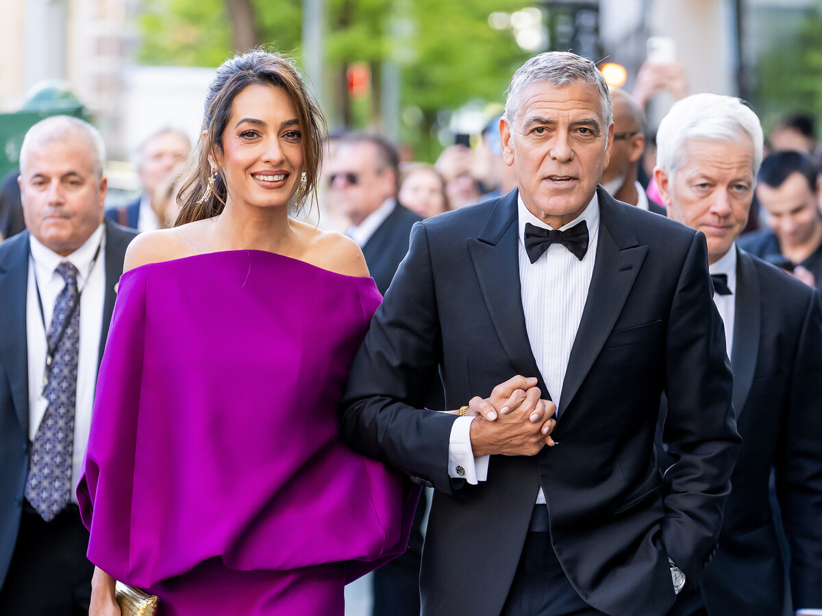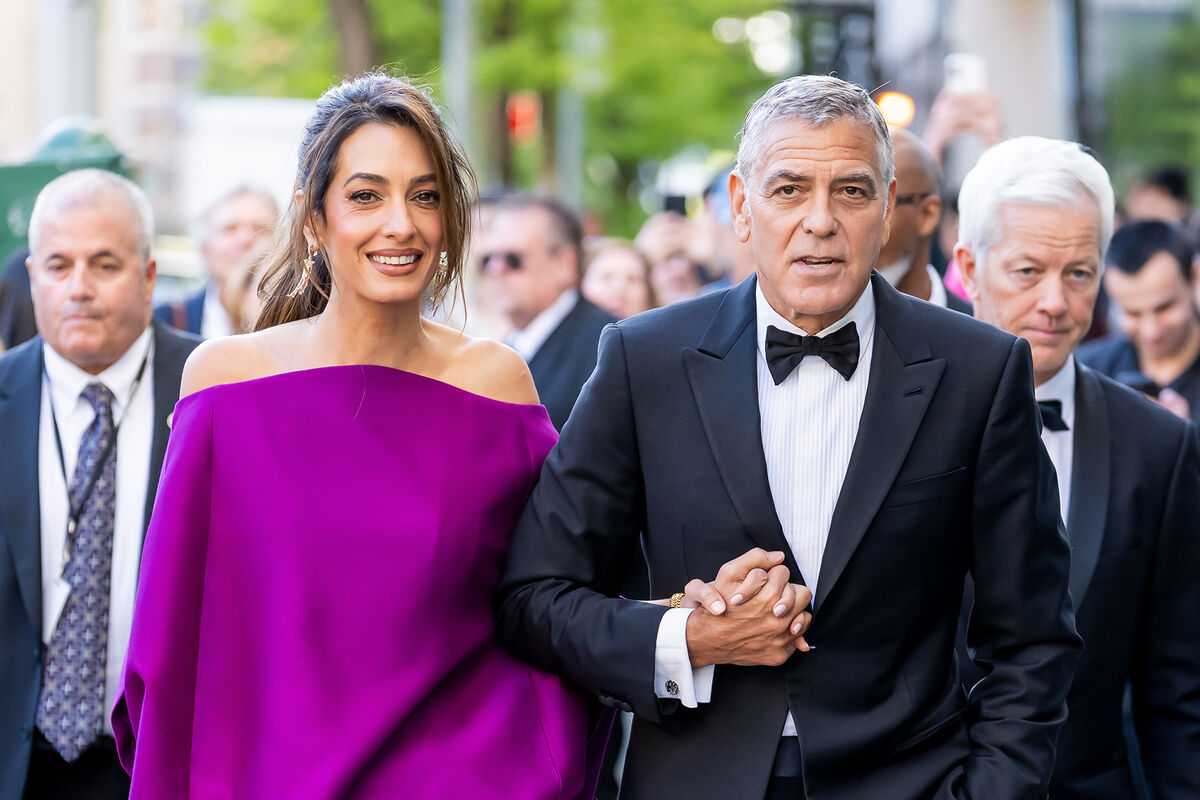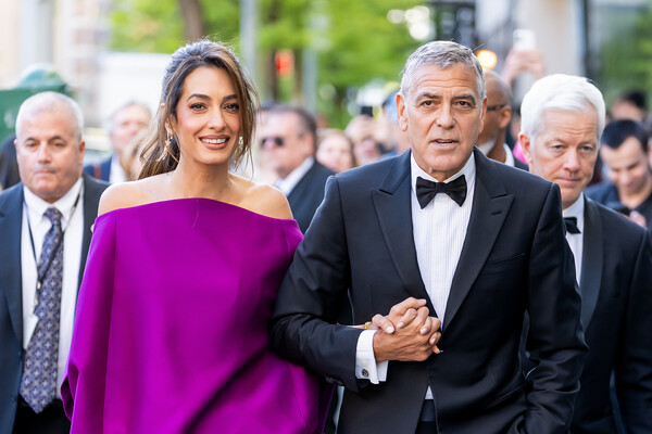 Джордж Клуни и Амаль Клуни посетили 51-ю церемонию вручения премии Чаплина, которая состоялась 27 апреля в Нью-Йорке. Юристка предстала перед публикой в мини-платье цвета фуксии и золотых туфлях на каблуках. Она добавила к образу клатч в тон обуви, длинные серьги, браслет и кольца. Знаменитости собрали волосы в хвост с прядями у лица и сделали вечерний макияж. Джордж Клуни предпочел белую рубашку с бабочкой, брючный костюм и туфли.