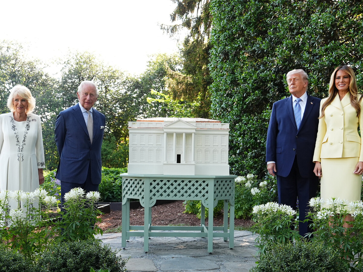 Первая леди США Трамп в юбке и лодочках со змеиным принтом снялась с Карлом III