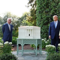Дональд Трамп и его жена Мелания приняли членов королевской семьи в Белом доме. Для встречи первая леди США выбрала желтый костюм с юбкой от Adam Lippes и туфли на каблуках со змеиным принтом от Manolo Blahnik. Жена Дональда Трампа позировала перед фотографами с уложенными в локоны волосами и макияжем.
