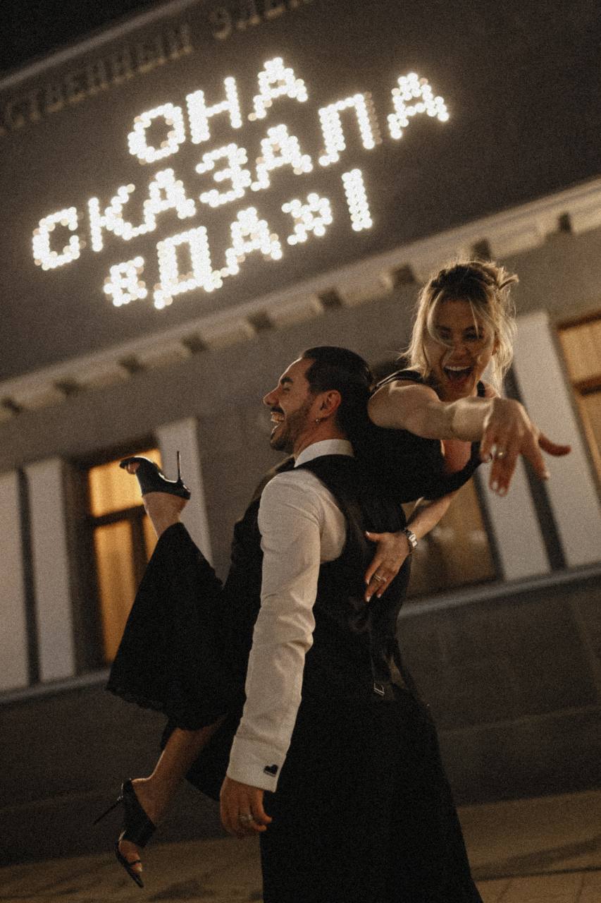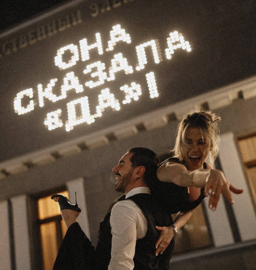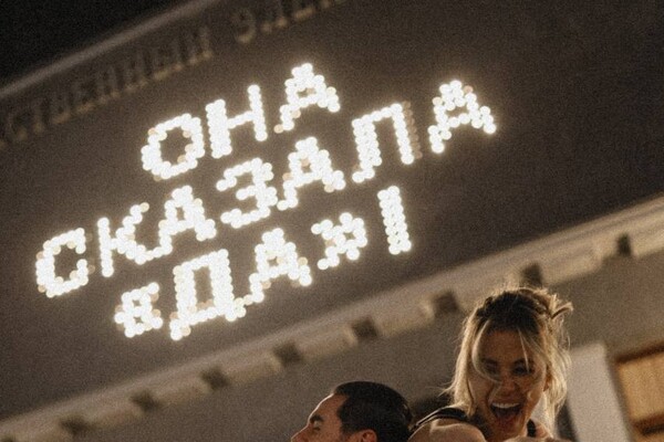 Тимур Родригез сделал предложение руки и сердца Кати Кабак рядом с кинотеатром «Художественный» в Москве. Певец поделился фото, на которых они с возлюбленной были запечатлены в вечерних нарядах. На экране кинотеатра была надпись: «Она сказала: «Да»!