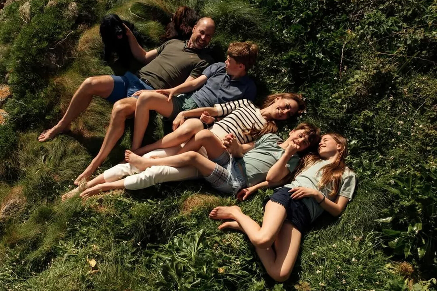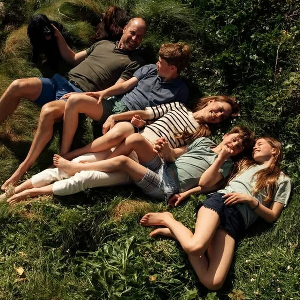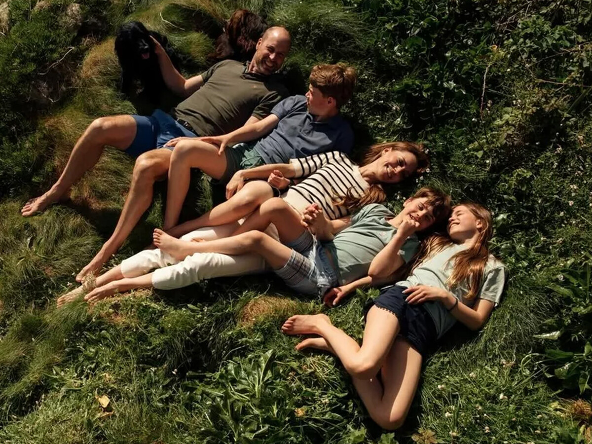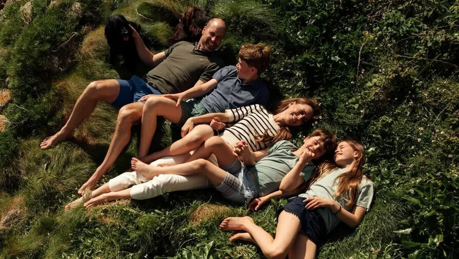 Пара поделилась новым семейным портретом, где позировала со всеми тремя детьми: Джорджем, Шарлоттой и Луи. В кадре вся семья лежала на зеленой траве во дворцовых садах.