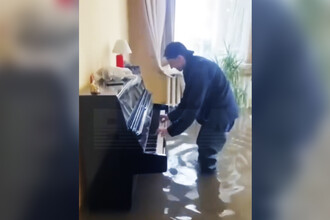 Житель Оренбурга сыграл на пианино в затопленном доме