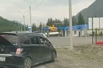 Вертолет при взлете с дорожной АЗС чуть не задел лопастями автомобили
