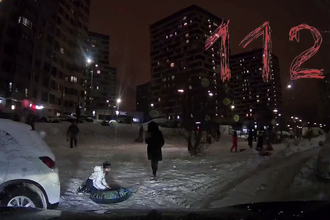 В Мытищах на видео сняли, как ребенок скатился на ватрушке на проезжую...
