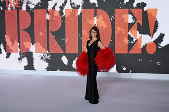 51-летняя Пенелопа Крус в платье с глубоким декольте и рукавами с перьями...