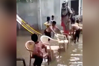 В Индии дети построили для учительницы мост из стульев, чтобы помочь ей попасть в школу