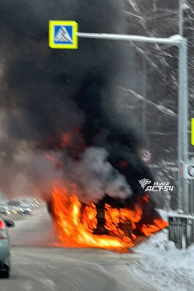 «Сгорел дотла»: на видео сняли автомобиль, который воспламенился на дороге в Сибири