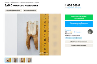 Россиянин выставил на продажу «зуб снежного человека» за 1 млн рублей