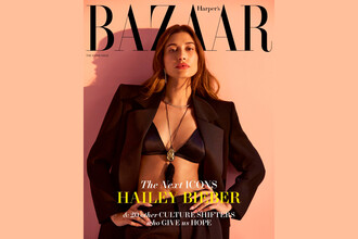 Хейли Бибер снялась в шелковом топе для обложки Harper's Bazaar