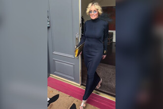 66-летняя Шэрон Стоун появилась на публике в облегающем платье с разрезом до бедра