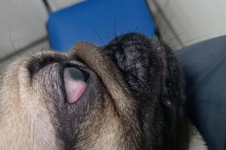 В Москве щенку мопса удалили необычное новообразование на глазном яблоке