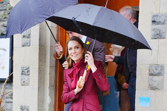 Кейт Миддлтон в бордовом пальто приехала с принцем Уильямом в Уэльс