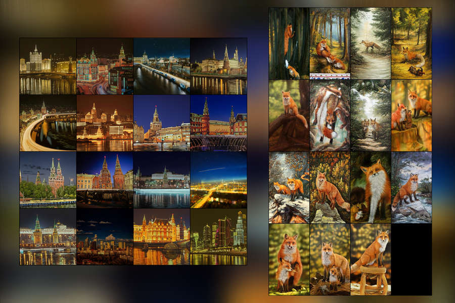 Наш Kandinsky рисует настоящие живописные картины. Вот посмотрите: это «Ночная Москва», а это — «Лиса в лесу».
