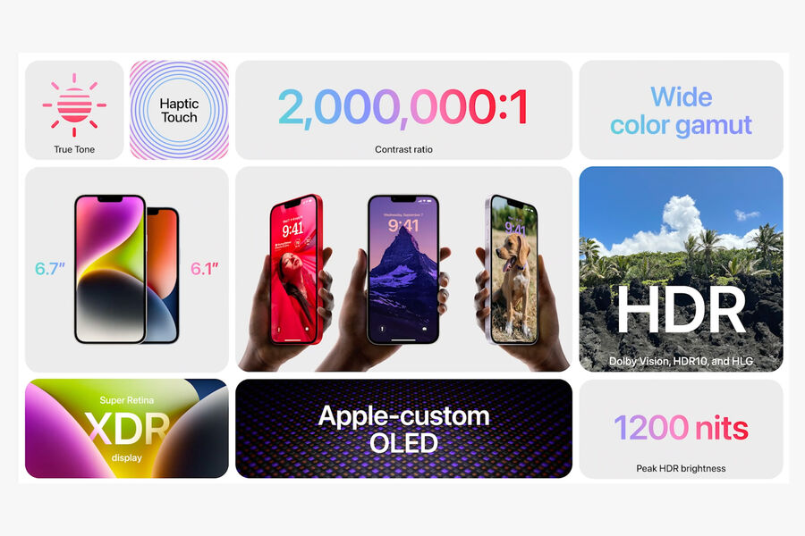 iPhone 14 Plus оснастили дисплеем с диагональю 6,7 дюймов, а iPhone 14 — 6,1-дюймовым.