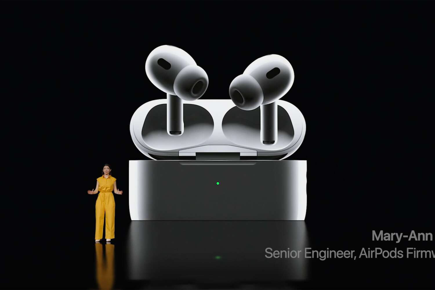 AppleКроме того, в AirPods Pro 2 появился новый датчик на дужке наушников, с помощью которого можно регулировать громкость.