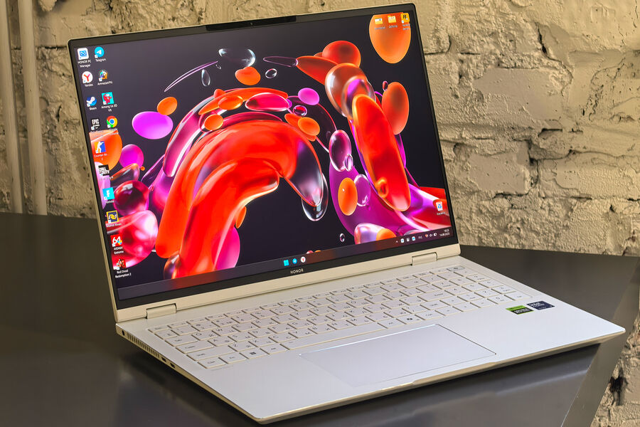 Поступивший на тест в «Газету.Ru» HONOR MagicBook Pro 16 HUNTER может похвастаться флагманским процессором Intel Core Ultra 9 285H и видеокартой NVIDIA GeForce RTX 5060 (8 ГБ GDDR7) с поддержкой DLSS 4 новейшая версия технологии от NVIDIA, которая с помощью нейросети и функции Multi-Frame Generation способна генерировать промежуточные кадры на один оригинальный кадр, обеспечивая 8-кратный прирост производительности, улучшенную плавность, качество изображения и сниженное использование видеопамяти и Frame Generation. С таким железом ноутбук может работать при TDP — это характеристика, которая показывает максимальное тепловыделение процессора и/или видеокартой под нагрузкойдо 150 Вт. Для менее ресурсоемких задач, кстати, имеется интегрированная видеокарта Intel Arc 140T.