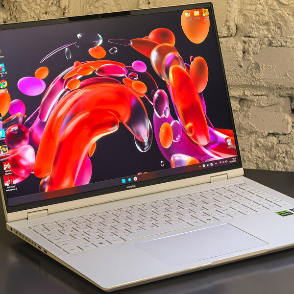 Главное, чем может похвастаться ноутбук — его дисплей. Это 16-дюймовый экран HONOR FullView с 3K-разрешением (3072х1920 пикселей), тонкими рамками, частотой 165 Гц и яркостью до 500 нит. Также производителем заявлены цветовые охваты 100% DCI-P3 / sRGB, отображение 1,07 млрд цветов, профессиональный уровень цветопередачи дельта E<0,5 и время отклика 3 мс.