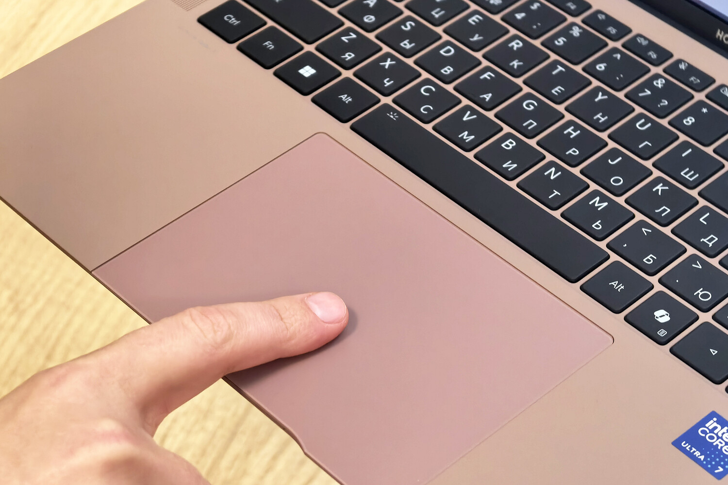 С точки зрения журналиста или контентмейкера, работающих зачастую вне офиса, — это привлекательные параметры, ведь ноутбук удобно держать даже одной рукой, в том числе благодаря грамотной развесовке компонентов. Отдельного внимания достоин цвет «пепельный розовый», который выделяет ноутбук на фоне нейтральных конкурентов в «металлических» цветах.