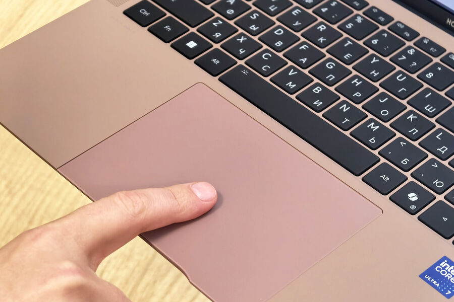 Отдельной похвалы достоин большой стеклянный тачпад ноутбука, в котором отклик сопровождается вибрацией как на смартфоне при вводе на клавиатуре, а не привычным щелчком. Такое решение ощущается, как дорогое и не раздражает окружающих постоянными щелчками. Более того, в фирменном ПО HONOR PC Manager можно настроить силу вибрации и чувствительность нажатия тачпада, разного рода жесты, в том числе позволяющие делать скриншоты, регулирующие уровень громкости или яркости и многое другое.