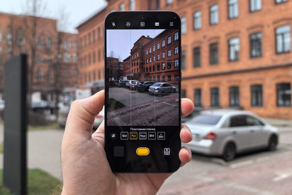Для портретной и городской съемки это открывает понятный сценарий использования: владелец выбирает не «фильтр», а тон, который задает визуальный характер серии снимков. Например, «Позитивная пленка» добавляет теплоты и легкий ретро-уклон, а «Негативная пленка» подчеркивает контраст и фактуру. Снимать в режиме Ricoh GR можно только на основную камеру, используя выделенное фокусное расстояние: 28, 35, 40 и 50 мм.