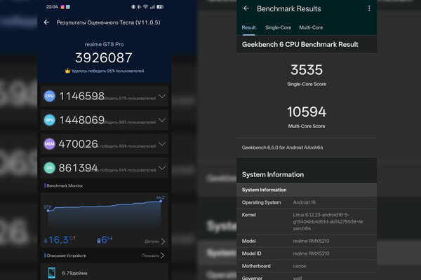 Не исключено, что проблема с нагревом в будущем будет решена обновлениями, как это обычно бывает, и realme GT 8 Pro сможет показать еще более хороший результат. Тем не менее уже сейчас устройство демонстрирует производительность флагманского уровня с существенным запасом на перспективу — как минимум на несколько ближайших лет.