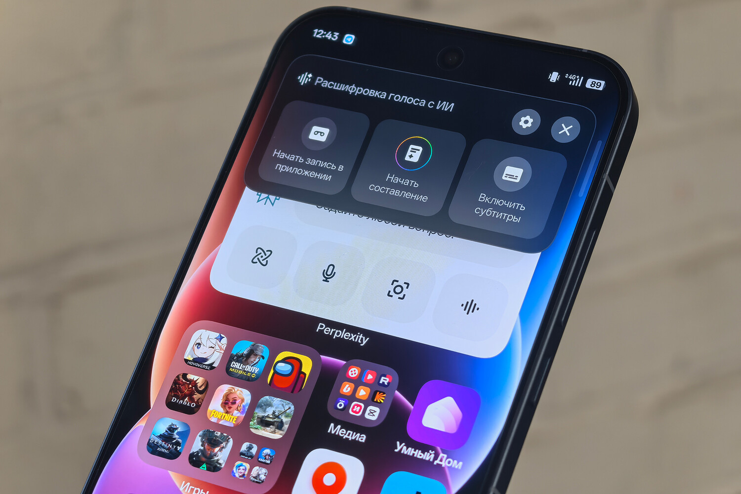 - «Расшифровка голоса с ИИ» (поддерживает русский язык) — доступна в диктофоне, заметках, а также во время звонков в мессенджерах, что особенно актуально для журналистов и «удаленщиков»;