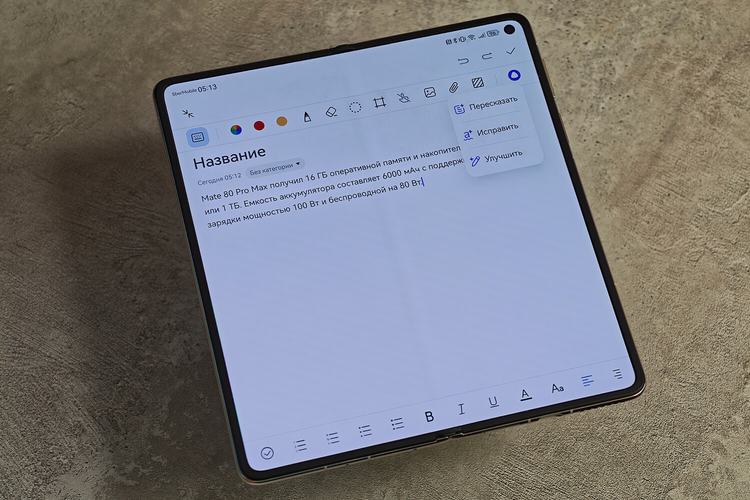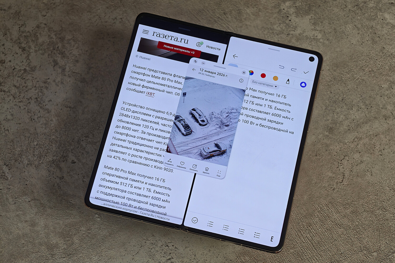 Ценность складного формата раскрывается в практичности. Большой экран будет полезен в задачах, где обычному смартфону «тесно». На внутреннем дисплее удобнее всего работать с таблицами и документами, читать, смотреть кино и многое другое. Например, часть этого обзора была написана в метро прямо со смартфона, который пригодился в работе «на ходу» там, где развернуть ноутбук было невозможно.