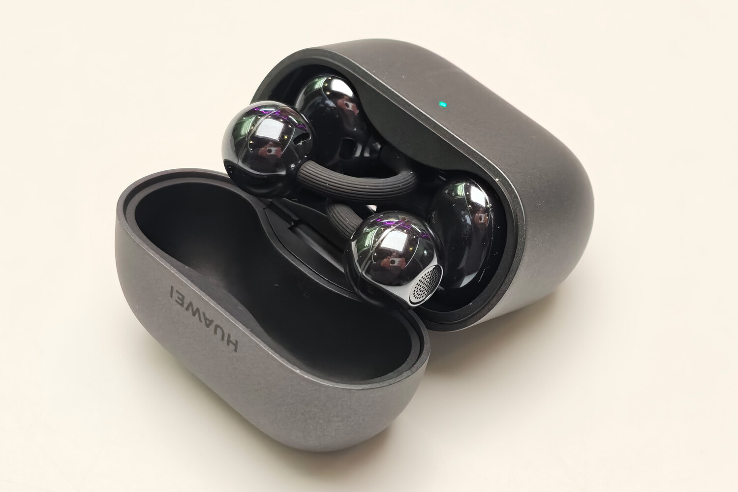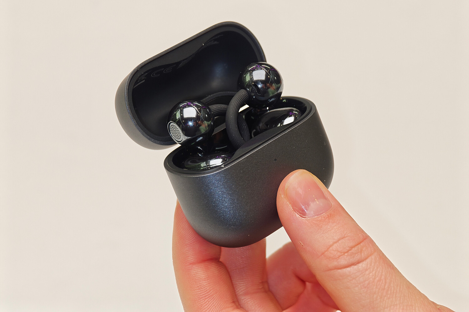 Дизайн кейса заслуживает особого внимания. Наушники можно размещать в любом положении, – они не имеют фиксированных мест для левого и правого уха, на них нет надписей L и R. Более того, сами наушники универсальны: звук автоматически подстраивается в зависимости от того, на какую сторону они надеты, – достаточно закрепить их и помахать головой. Эта функция особенно полезна в темноте, где разглядеть надписи довольно сложно.