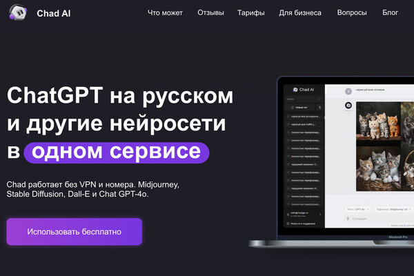 Описание: российская Al-платформа, сочетающая возможности генерации текста и изображений. Она комбинирует функционал разных нейросетей, проста в использовании.