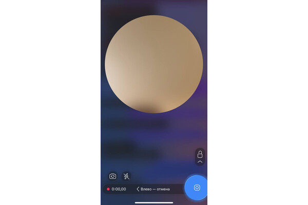В Telegram предусмотрена функция отмены записи до отправки в чат, если вдруг вас что-то отвлекло или вы сказали не то. Чтобы отменить запись, потяните кнопку камеры влево — тогда видео удалится.