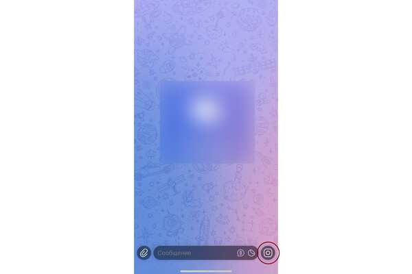 Нажимайте на иконку фотоаппарата больше двух секунд, тогда у вас откроется поле для записи «кружка». Чтобы записать видео, удерживайте палец на кнопке камеры. Как только вы отпустите кнопку, видео отправится в чат автоматически.