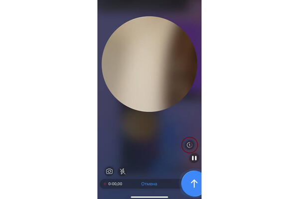 По умолчанию запись идет с фронтальной камеры телефона. Видео длится до одной минуты, после кружок автоматически завершится и отправится в чат.