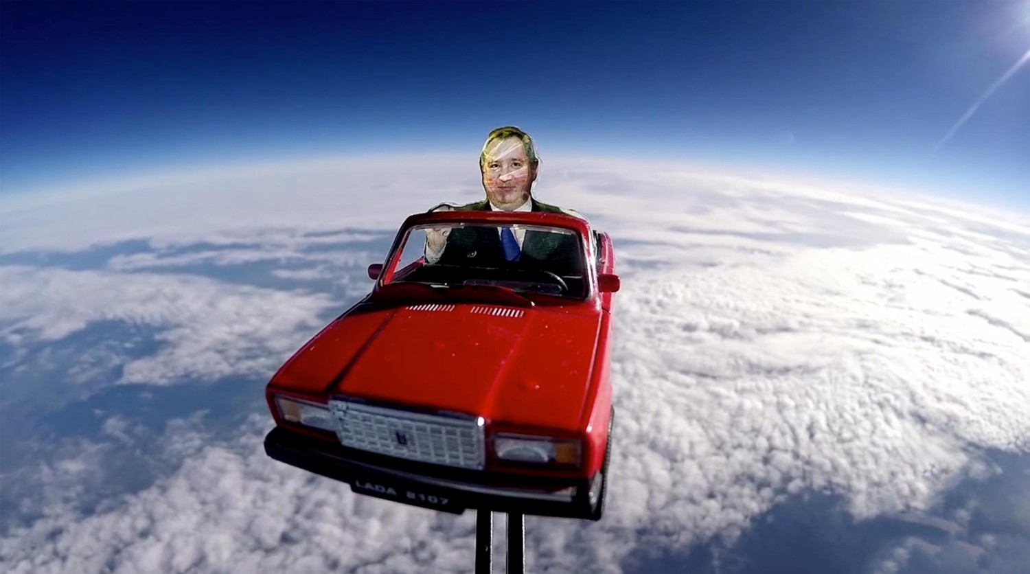 Выяснилось, что картонного Рогозина создали томские ученые, которые запустили в ближний космос автоматический дрейфующий стратостат с автомобилем и картонным Рогозиным за рулем.