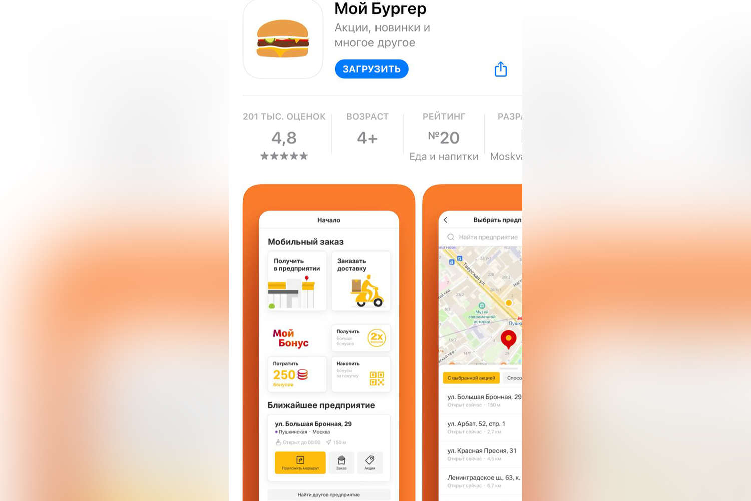 Бывшее приложение McDonald's обновилось у российских пользователей Apple и Android, теперь оно называется «Мой бургер».