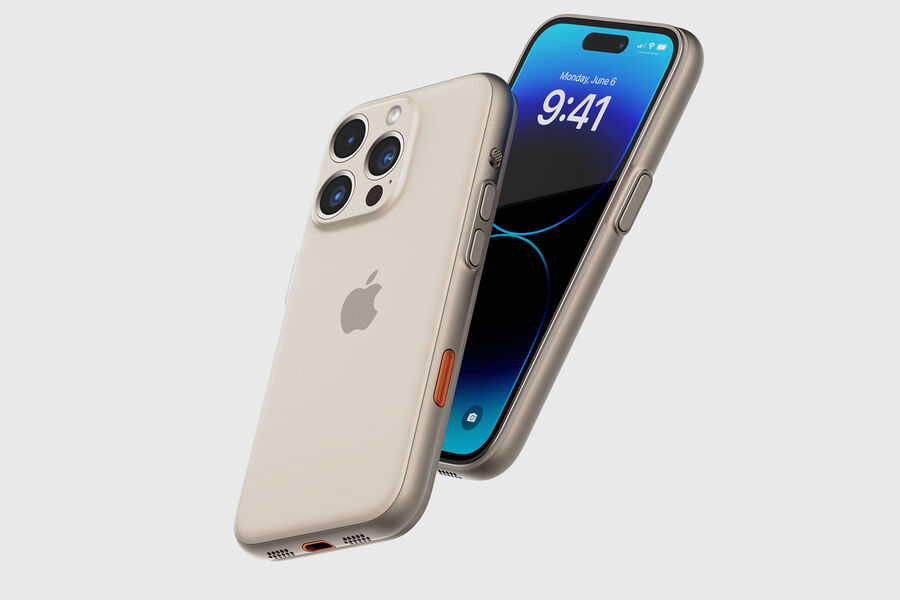 В адаптации Дэнерт скопировал два главных цвета умных часов — белый и оранжевый. В его iPhone 15 Ultra появилась оранжевая кнопка действия и обрамление порта зарядки этого же цвета.