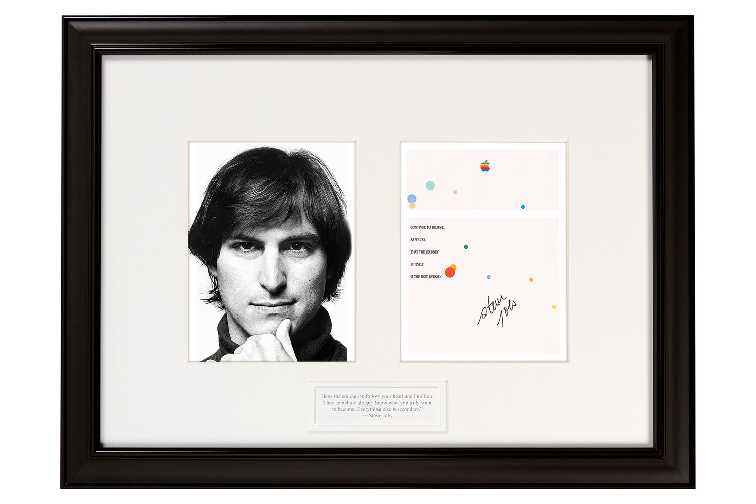 «Эту награду получают те, кто в течение десяти лет своими личными достижениями способствовал феноменальному успеху Apple. Apple награждает вас не только за ваш талант, энтузиазм и энергию, но и за десять лет вашего творчества и карьеры. Мы надеемся, что вы продолжите верить, как и мы, что путешествие само по себе является лучшей наградой», — гласит надпись на письме, помещенном в рамку.