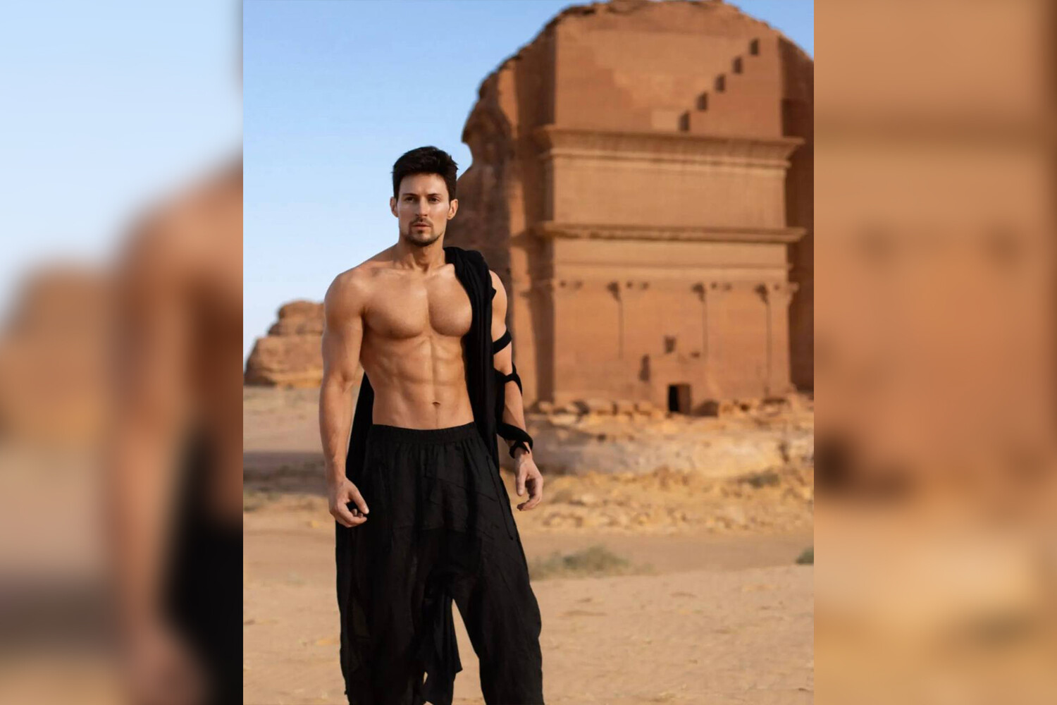На снимках Дуров позирует на фоне замка Каср аль-Фарид. При этом бизнесмен почти обнажен по пояс, благодаря чему можно разглядеть его рельефное тело. Из одежды на Дурове только штаны, обувь, шарф и, видимо, арабский аксессуар на руке.