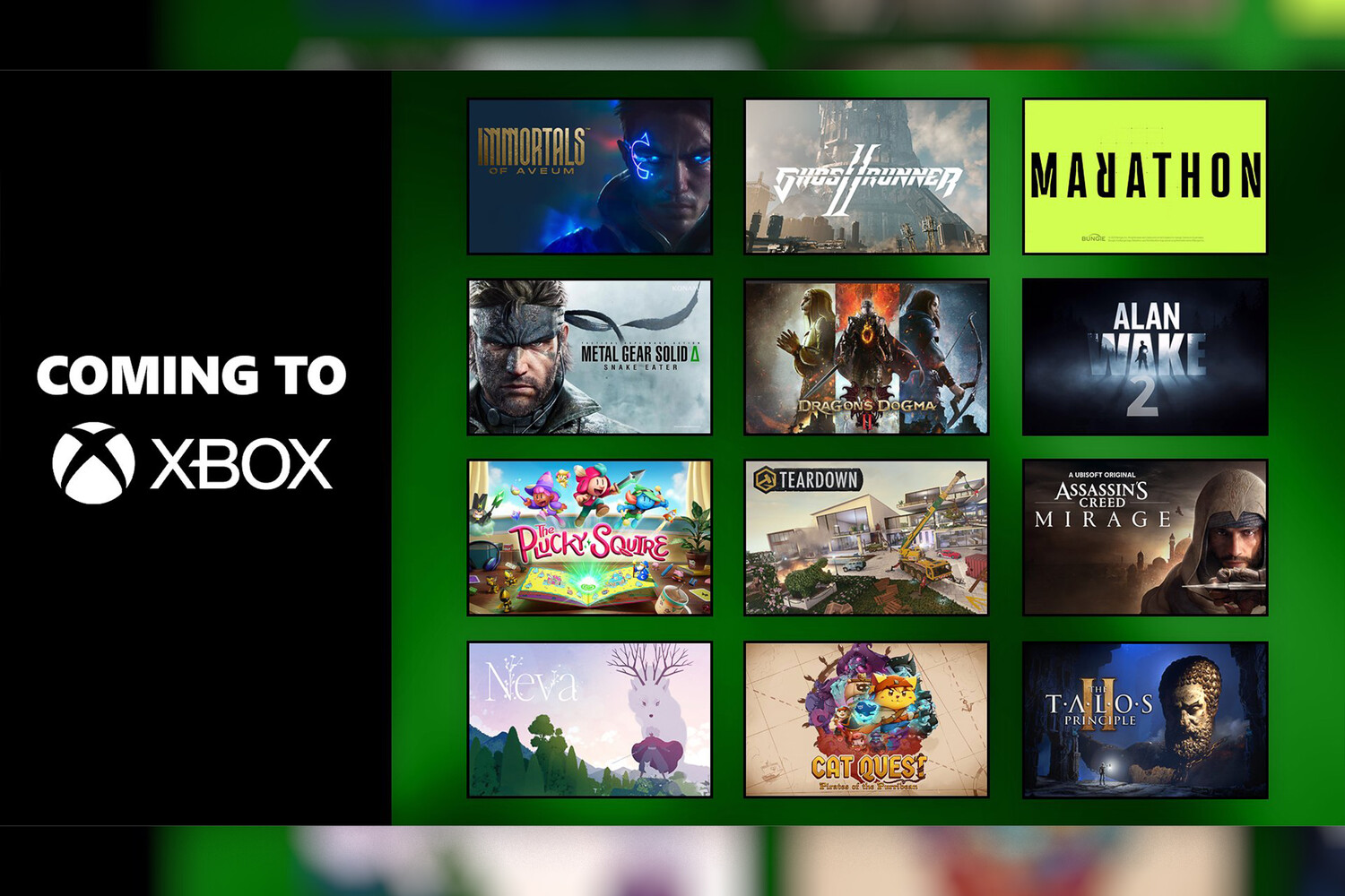 Авторы профиля американской компании опубликовали картинку с постерами 12 игр, которые вечером 24 мая представила Sony, и написали, что эти проекты выйдут не только на PlayStation, но и на Xbox. В опубликованный список вошли такие крупные проекты, как ремейк Metal Gear Solid 3, Alan Wake 2, Assassin's Creed Mirage, Marathon, Ghost Runner II и не только.