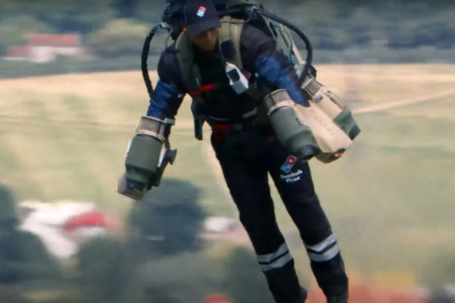 Для осуществления такой доставки Domino's сотрудничает с компанией Gravity Industries, которая разрабатывает и производит костюмы для полетов на реактивной тяге. Целью партнерства является создание самого быстрого и эффективного способа доставки пиццы в мире. Сроки проведения подобной акции не уточняются.