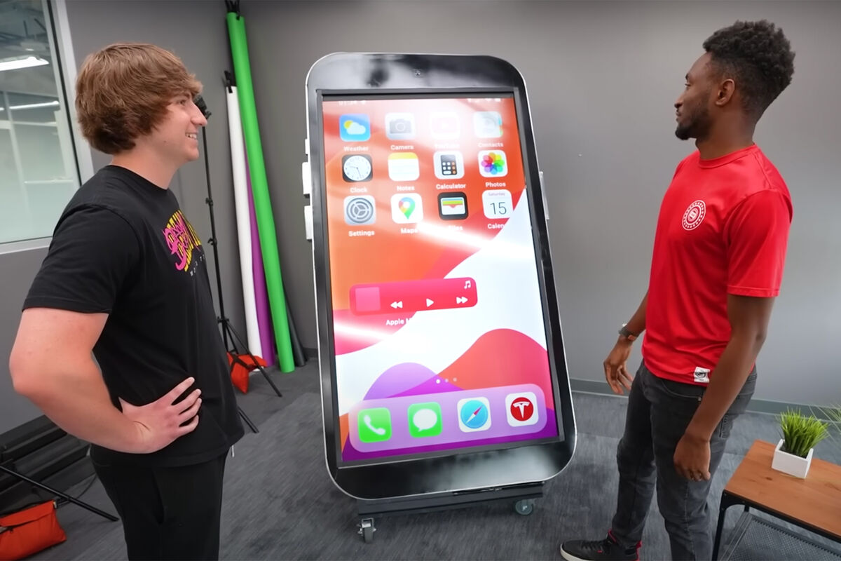 Видеоблогер Мэттью Бим собрал огромный работающий iPhone в человеческий рост
