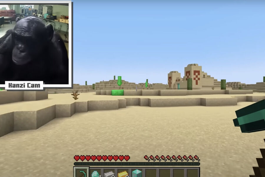 Американский видеоблогер под ником ChrisDaCow научил карликового шимпанзе по кличке Канзи играть в популярную видеоигру Minecraft. О процессе и результате обучения обезьяны контентмейкер рассказал в своем новом видеоролике.