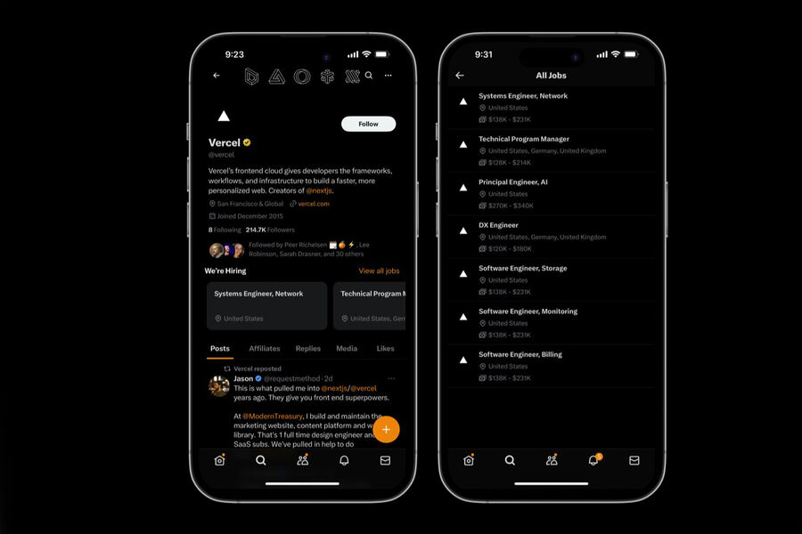 Отмечается, что пока сервис X Hiring доступен в бета-версии и не работает во всех странах. Пример работы сервиса можно посмотреть на странице компании Vercel в соцсети.