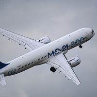 29 апреля МС-21 с новыми российскими системами и агрегатами совершил первый полет с аэродрома Иркутского авиационного завода. Он находился в небе 1 час 15 минут, достигнув скорости 580 км в час и высоты три тысячи метров.