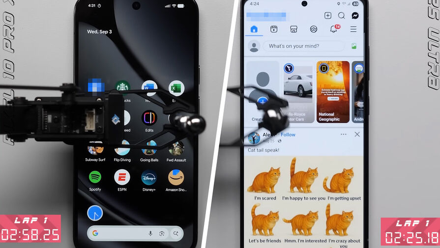 Автор YouTube-канала PhoneBuff сравнил производительность Pixel 10 Pro XL с чипом Google Tensor G5 и смартфона Samsung Galaxy S25 Ultra на Snapdragon 8 Elite с помощью роботизированного манипулятора. Об этом сообщает iXBT.