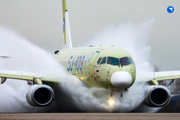 «Ростех»: самолет SJ-100 прошел испытания на защиту двигателей от воды